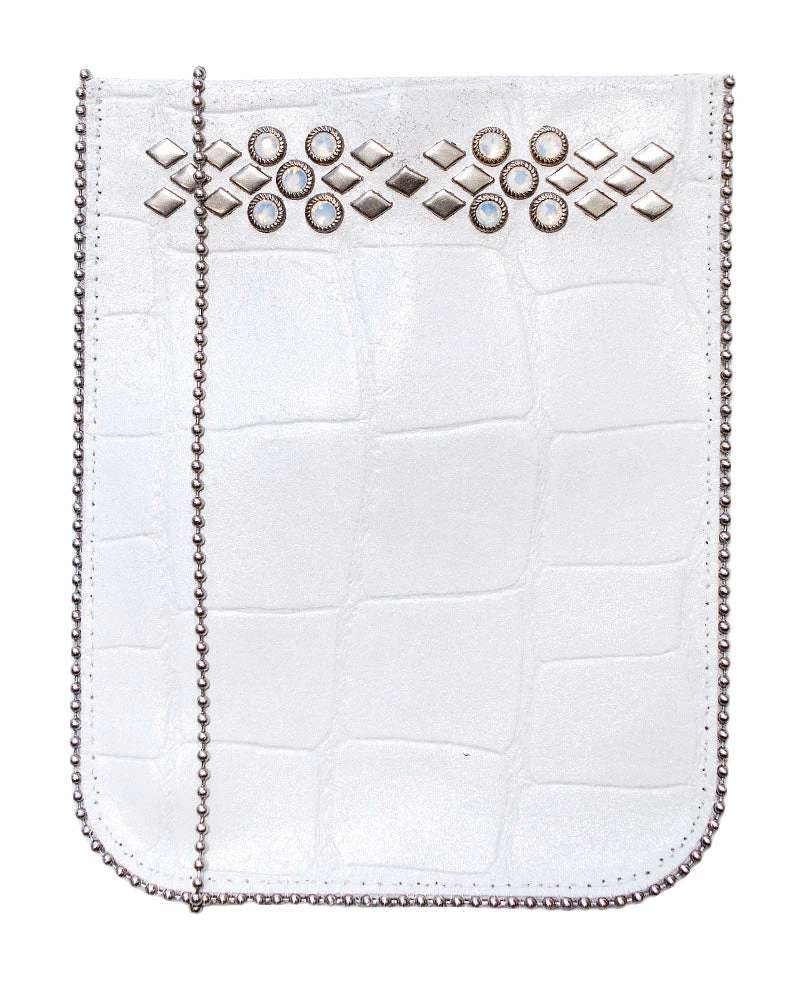 the crisp, embossed leather of thins bag is complimented by opalescent rhinestones and diamond studs. Perfect to brighten up your closet!