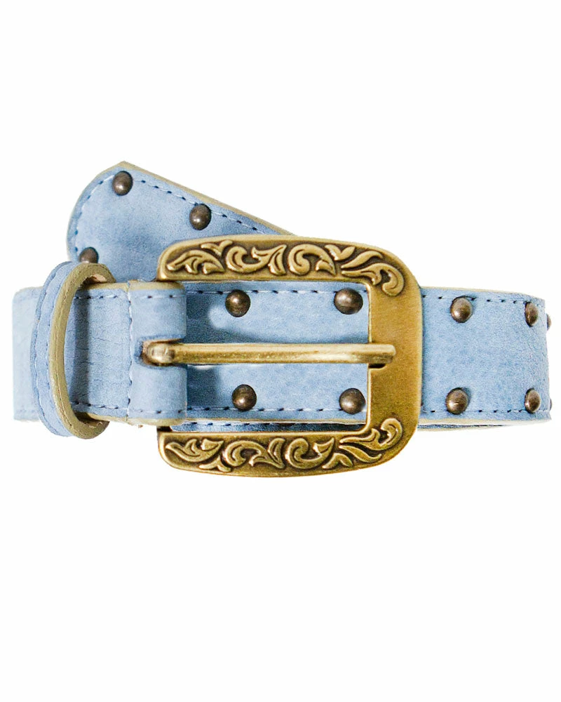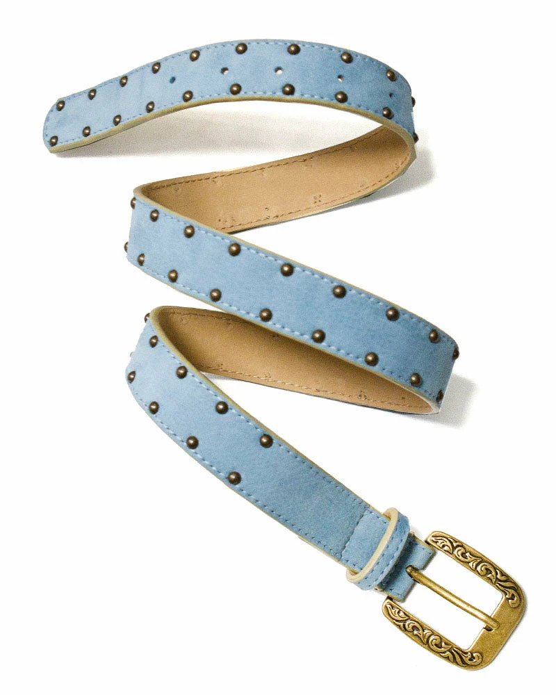 Small pearl studs line the edges of this style, finished with an elegant molded scroll buckle.Â