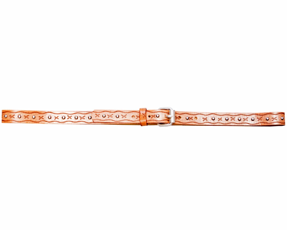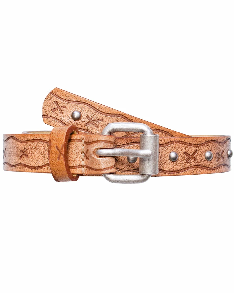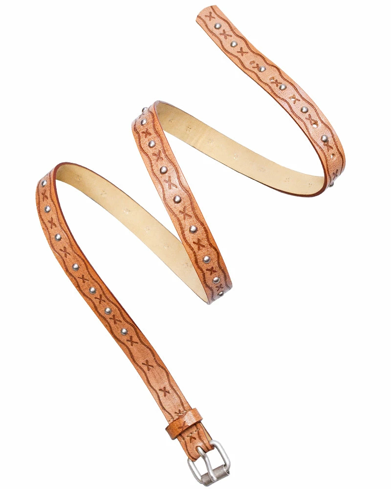 This effortlessly cool skinny belt is fastened with a roller-bar buckle, with embossed leather and stud details.Â