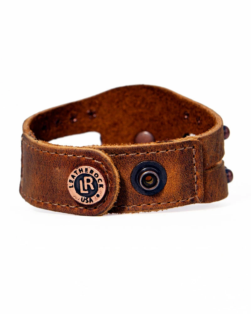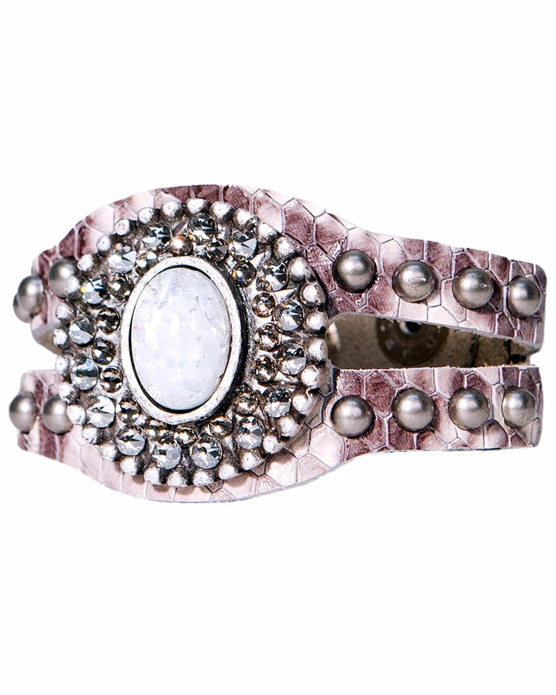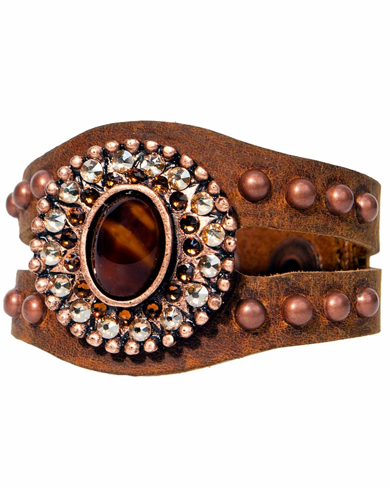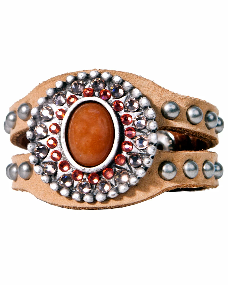 Bright stones shine on this studded leather bracelet, adding color to any look!