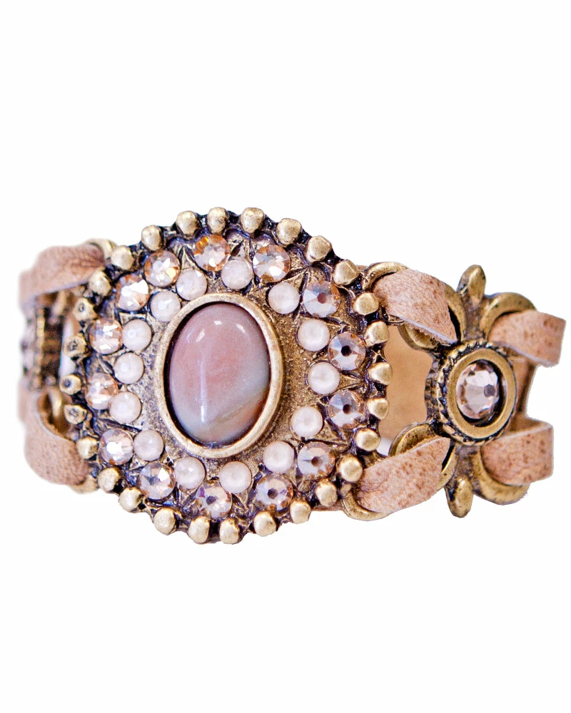 A semi-precious stone adds an elegant touch to this bracelet, with complimentary crystals.Â