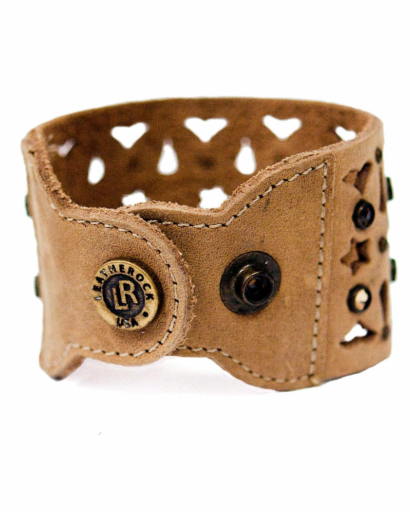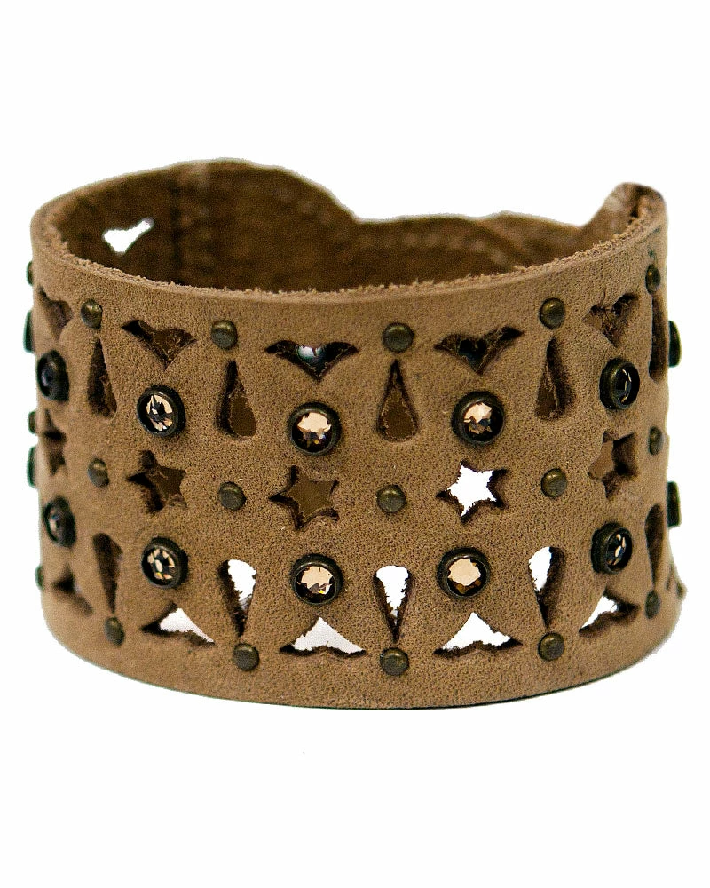This cuff’s design is formed with tiny cutouts and crystals.Â