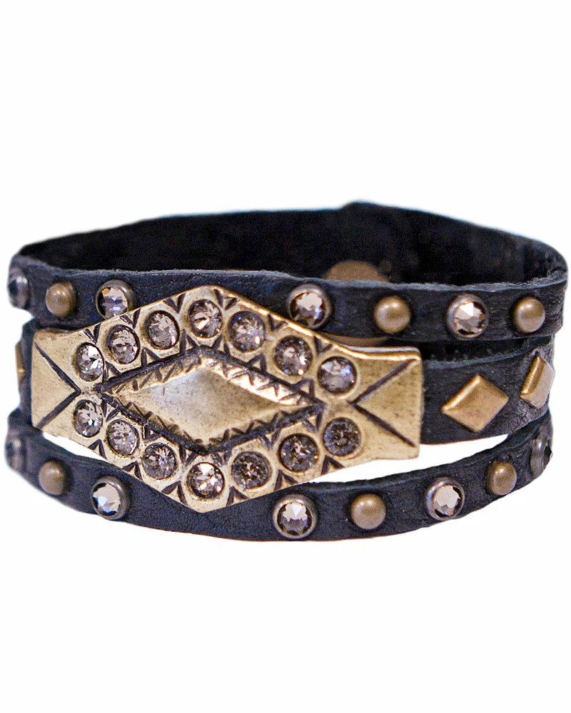 Add a tiny bit of western flair to any outfit with this studded diamond cuff.Â