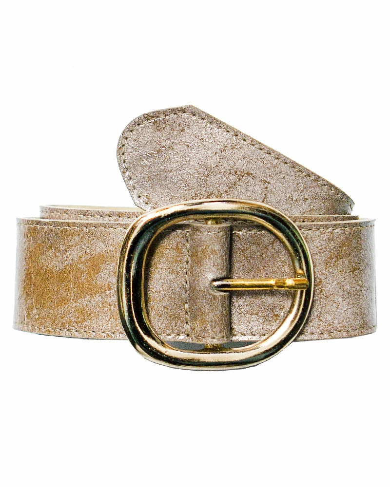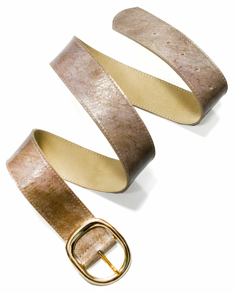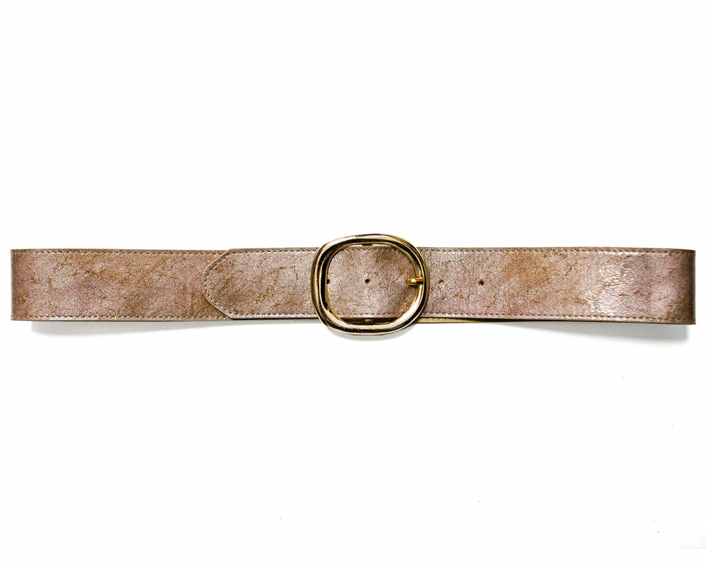 This belt fastens with a polished rounded buckle for a clean and sleek look.Â