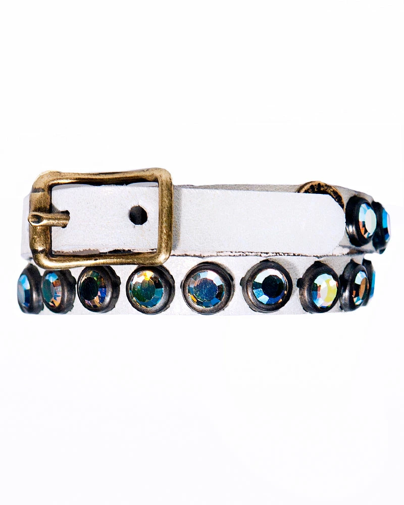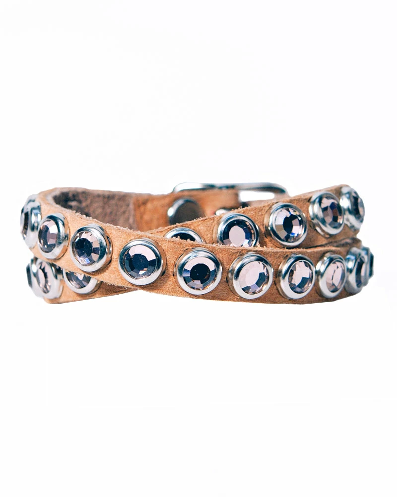 Beautiful crystals line this double-wrap bracelet, creating the illusion of stacked bracelets.Â