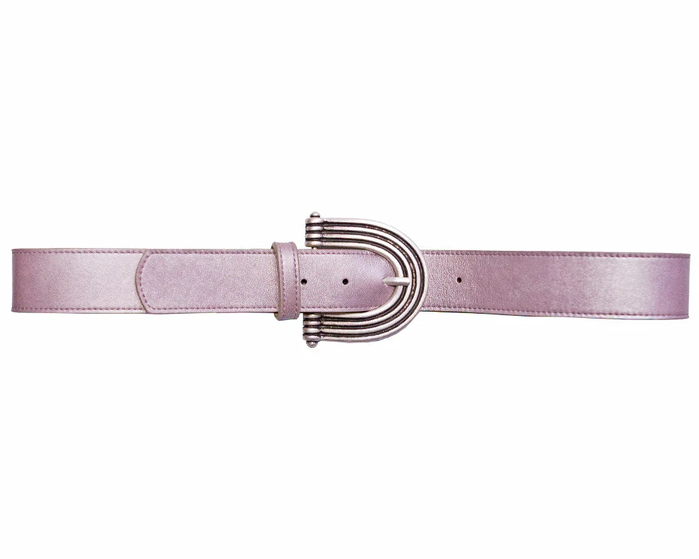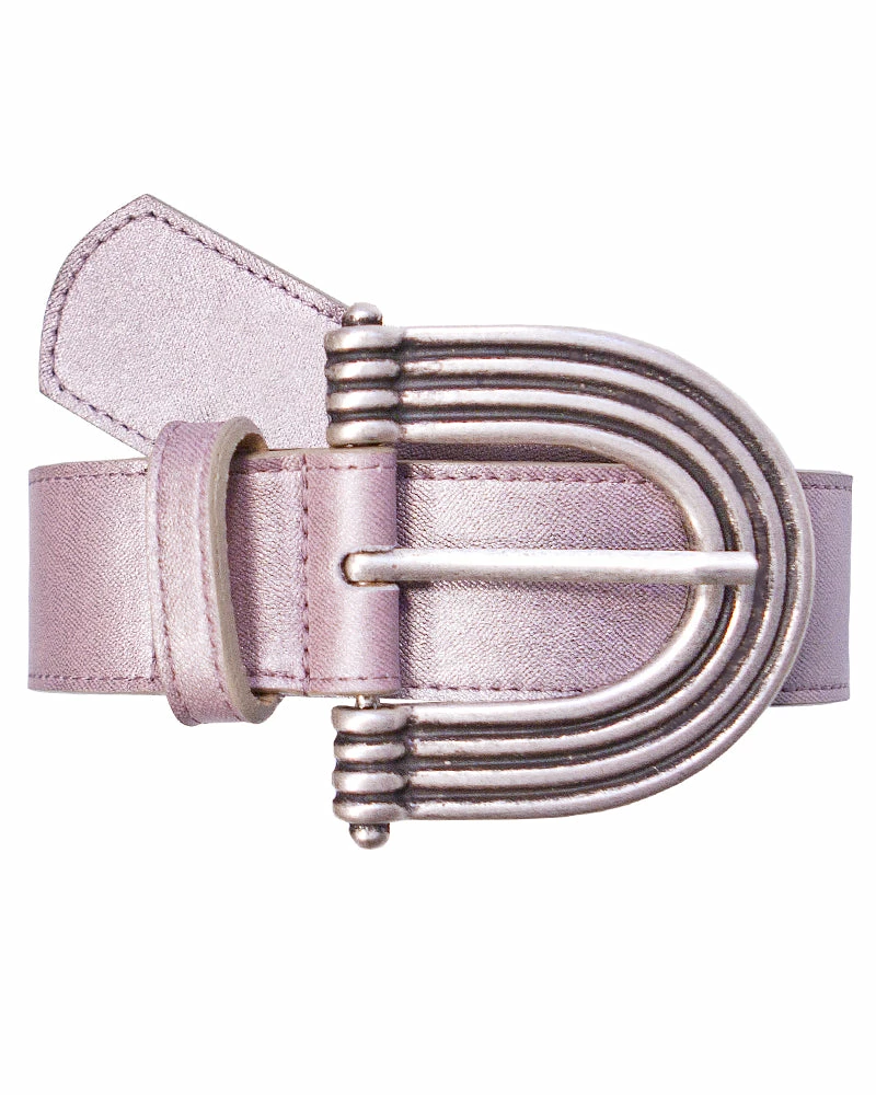 A statement buckle and textured metallic leather compliment each other perfectly on this cute belt.Â