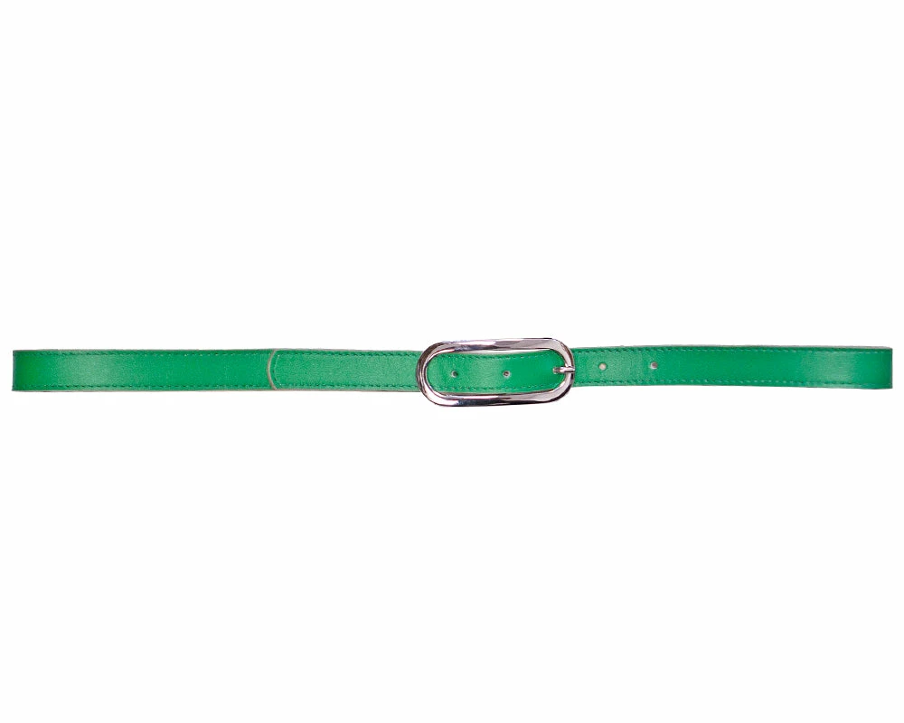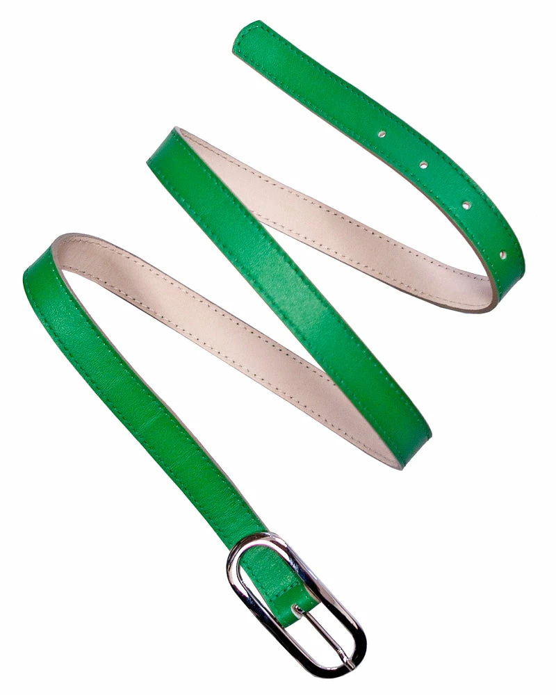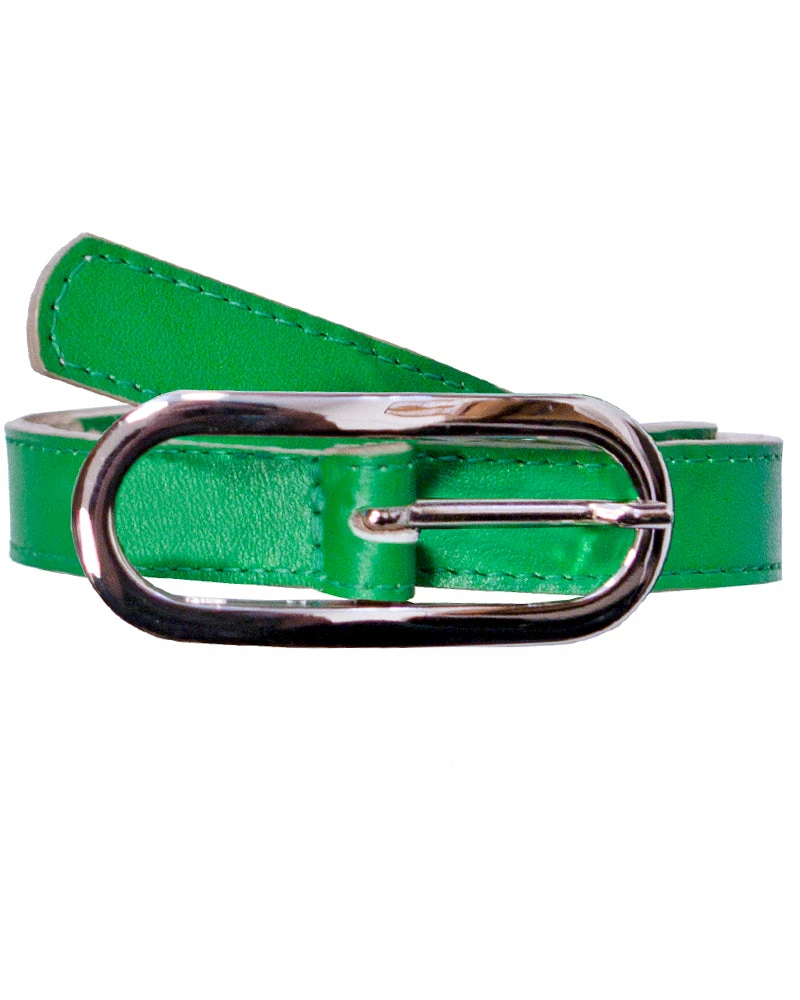A bright leather and shiny buckle make this a perfect accent belt!Â