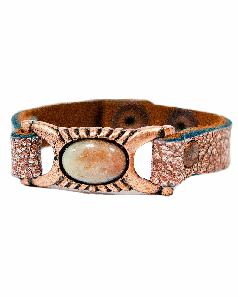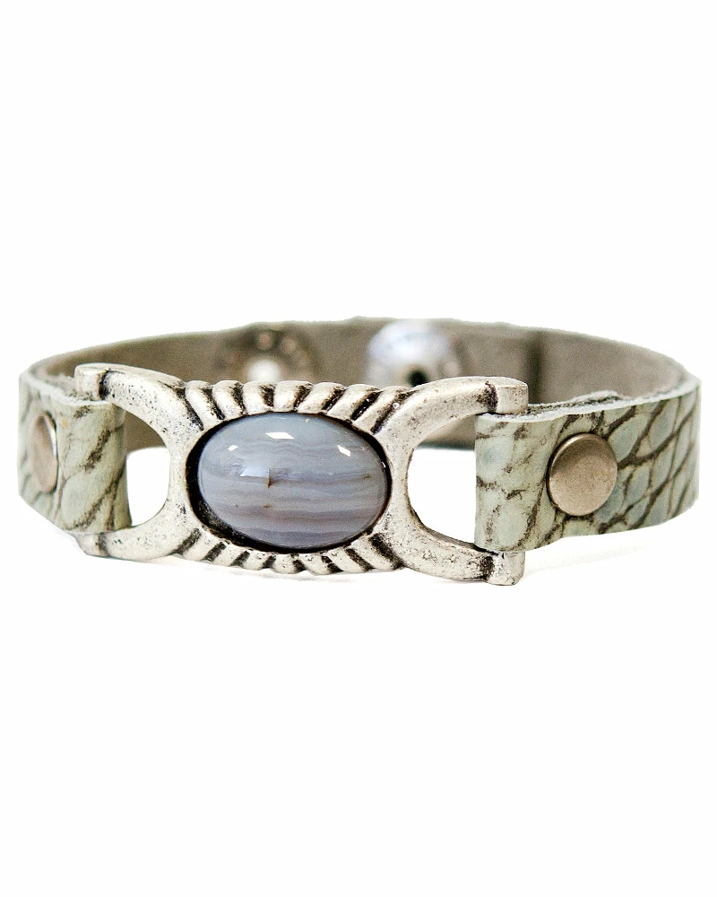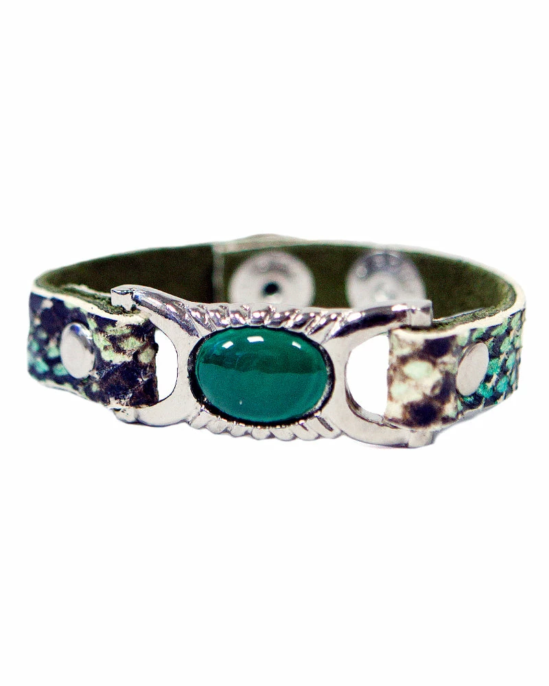 A pop of color is brought to this style with a unique semi-precious stone center.Â