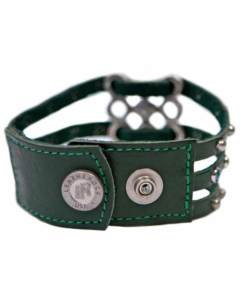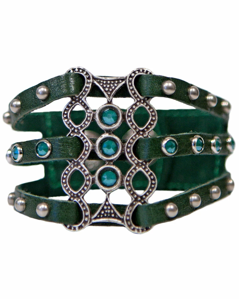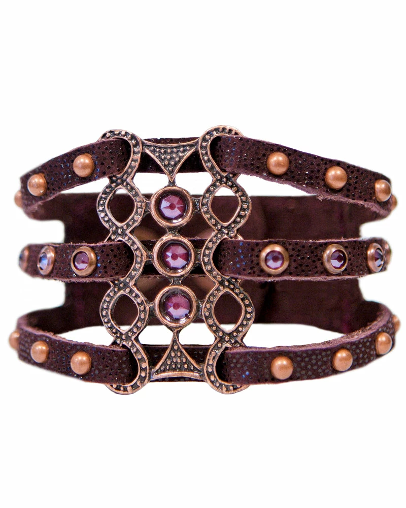 Leather is laced through a crystal ornament and finished with studs.Â