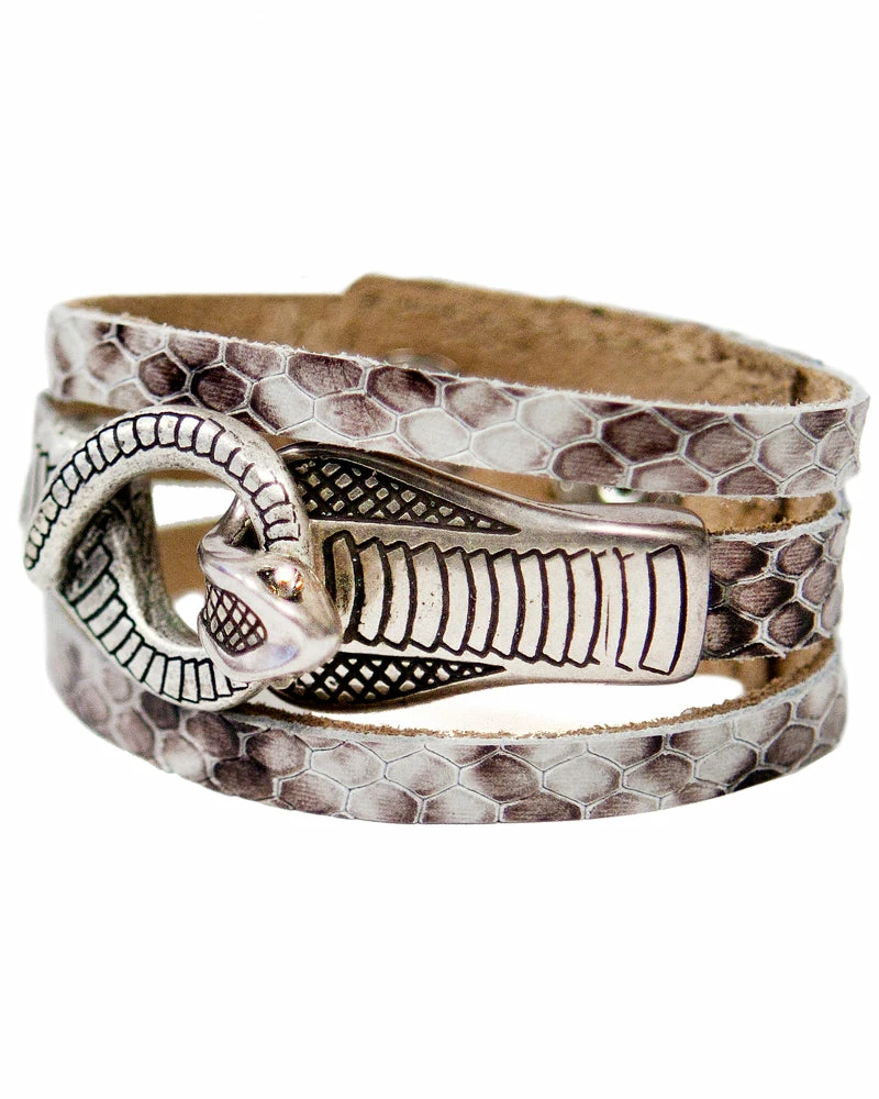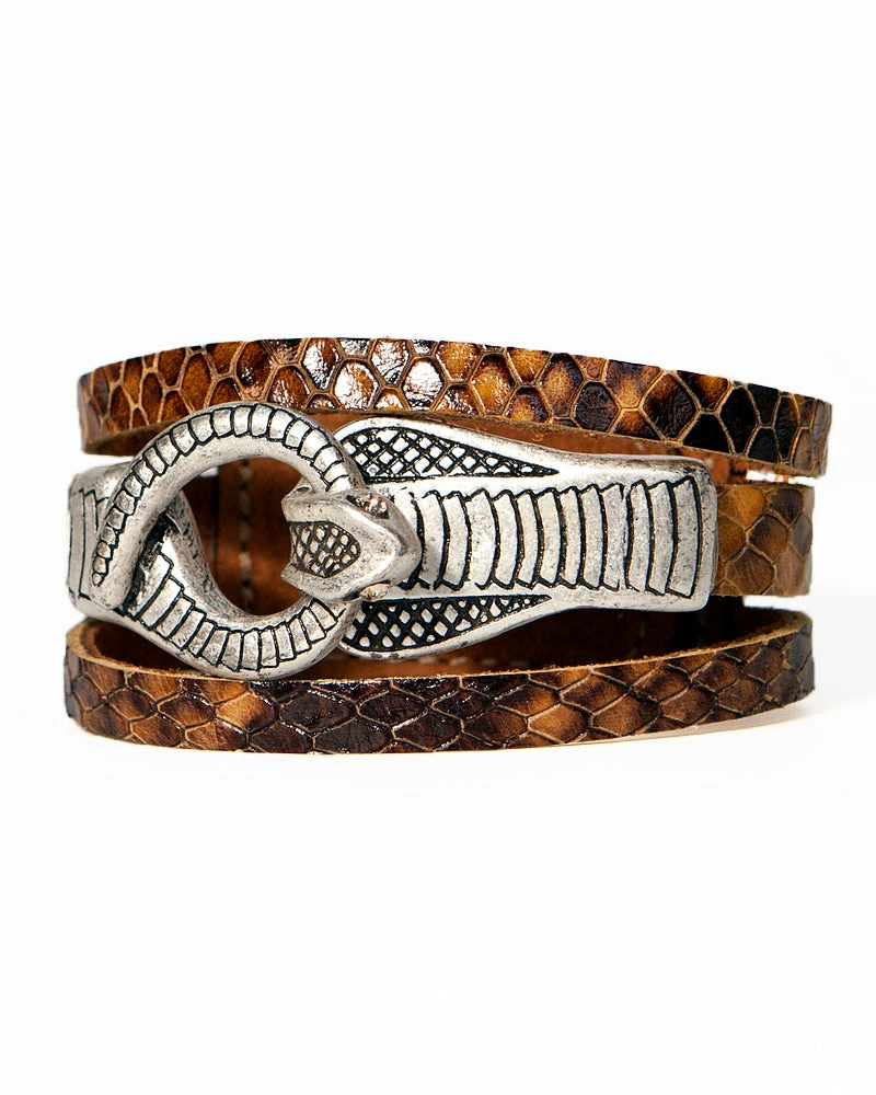 This playful snake sits on printed leather and will hypnotize you with its crystal eyes.Â