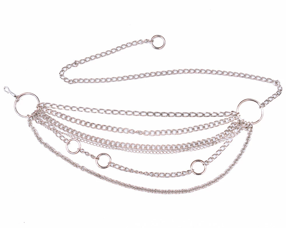 Layers of swag chains in bright polished silver bring the perfect rocker edge to any look.Â
