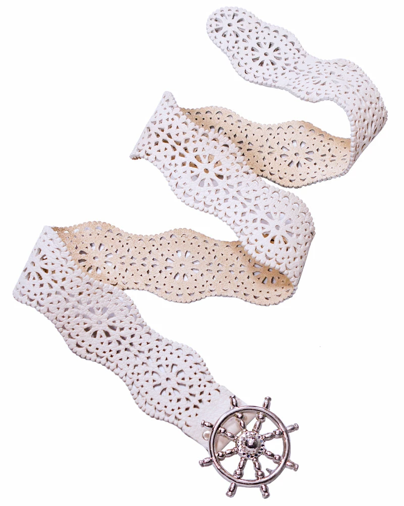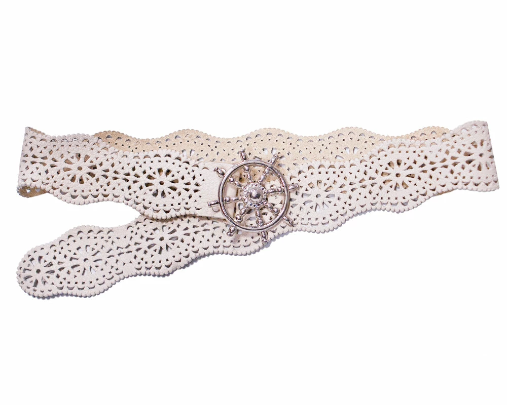 This one-of-a-kind belt features detailed cutouts on the strap and a nautical themed buckle!Â