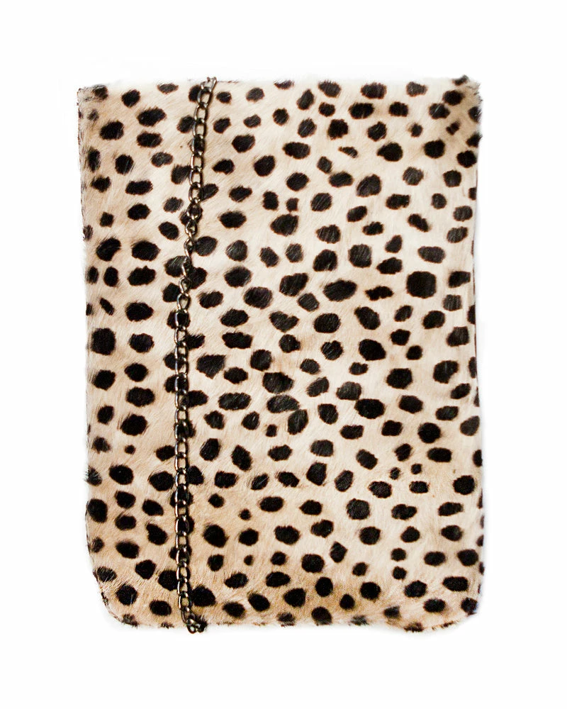 Leave your worries at home-they won’t fit in this bag! A printed hair front panel brings some attitude to this sleek crossbody pouch.Â