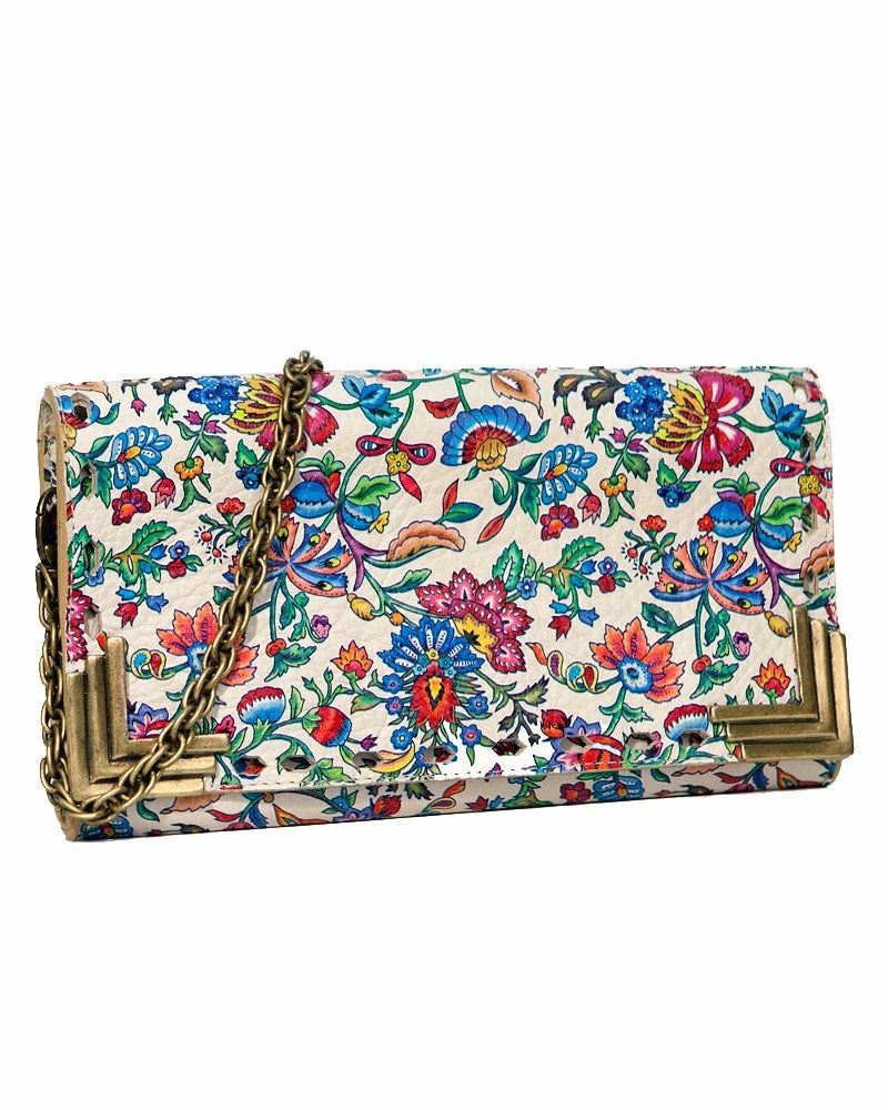 Polished hardware and printed leathers add a chic appeal to this clutch.