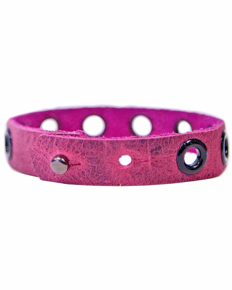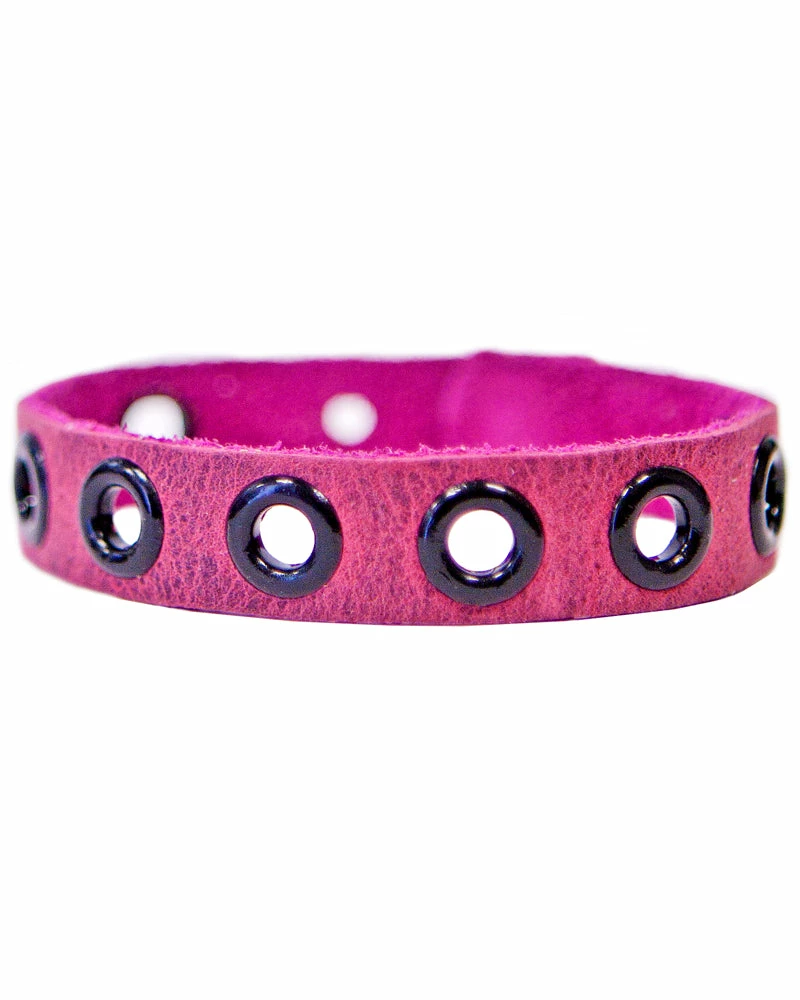 Simple and chic, this leather band is accented with contrasting eyelets.Â