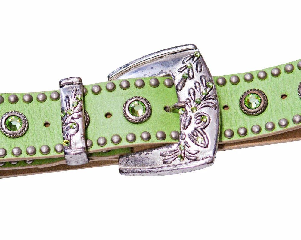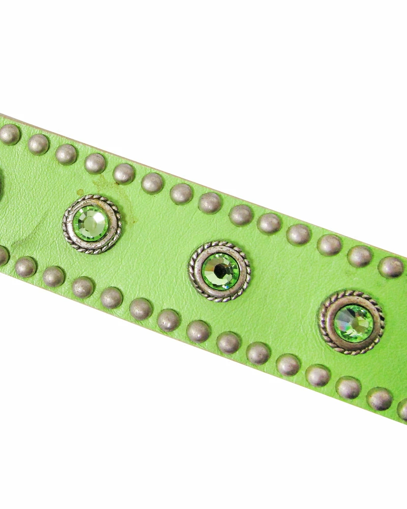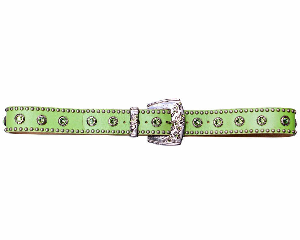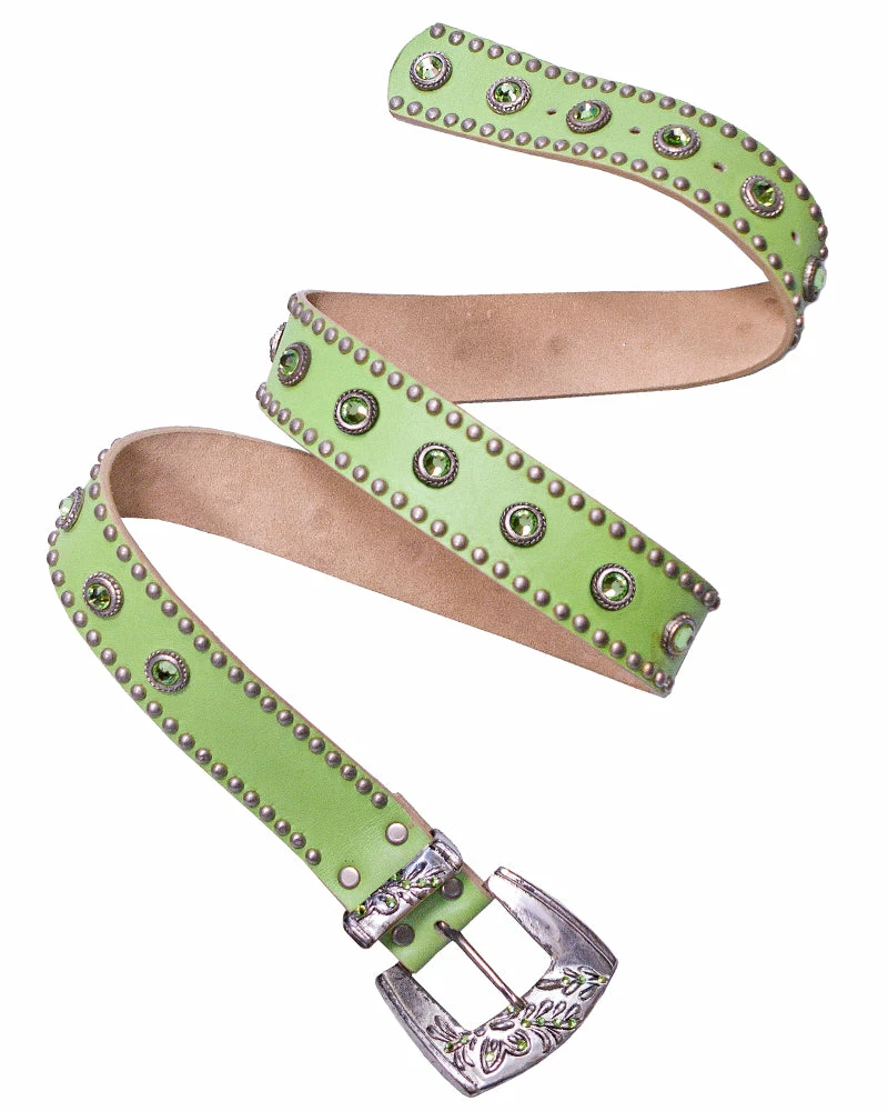 Bright pastel green is complimented with matching crystals and silver hardware on the early 2000’s belt!Â