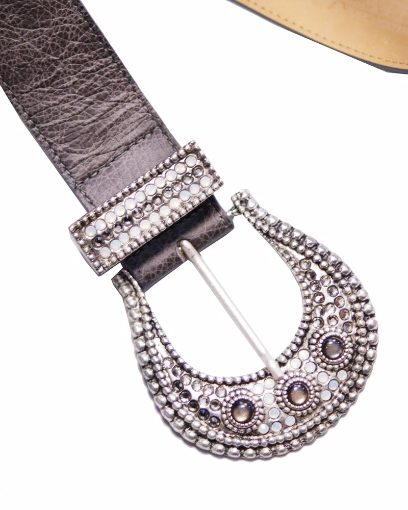The buckle and keeper set on this gray belt is adorned with sparkling crystals to brighten up your cloudy day!