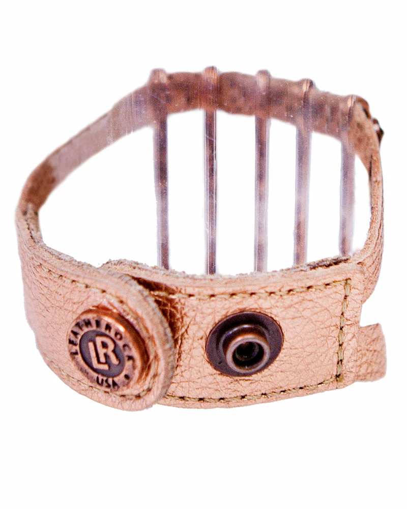 Hammered bars alternate with crystals on this unique rose gold metallic bracelet.
