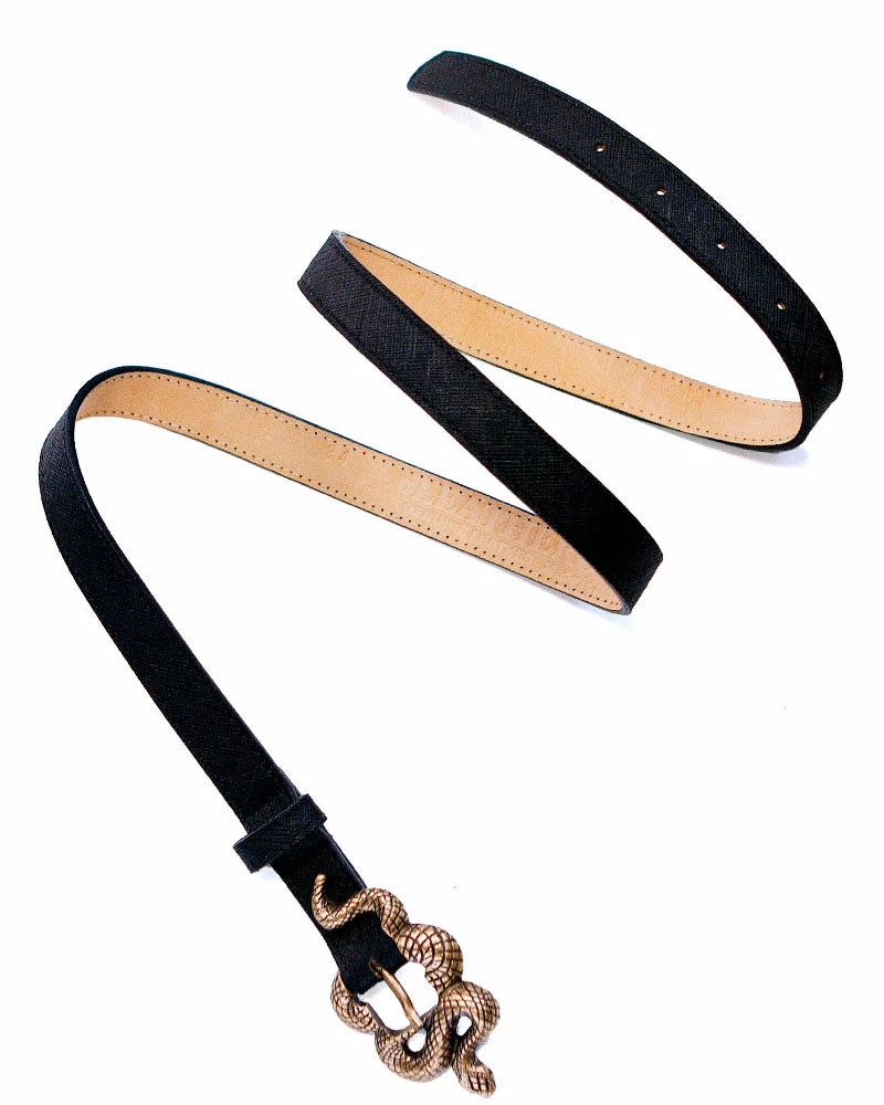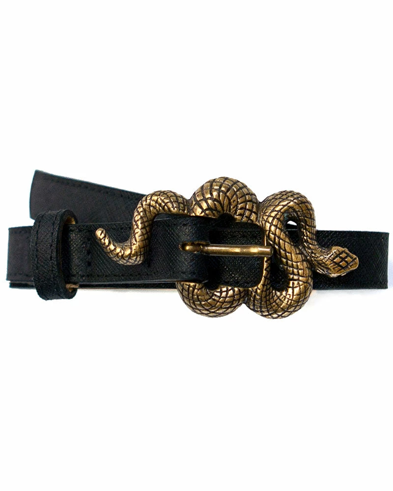 Embrace your inner villain with this small snake buckle. Adds an interesting accent to any look.Â